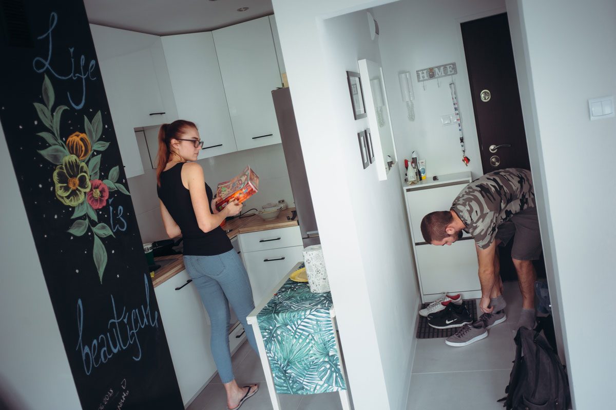 As it stands, they both have enough free time and money to enjoy themselves. They go to music festivals and enjoy riding bicycles around Warsaw, something that they would find difficult in Ukraine as there is no infrastructure to do so. They love meeting their Kramatorsk friends who have also settled in Warsaw. Alexey and Marina are renting a comfortable “kavalerka” flat, Polish for a tiny studio, and plan on buying a TV set soon.