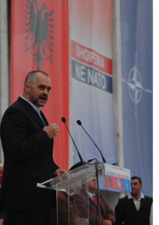 Von einem historischen Moment sprach der albanische Ministerpräsident Sali Berisha in Bukarest, als sein Land die ersehnte Einladung in den Aktionsplan zur Nato-Mitgliedschaft erhielt. Endlich kehre Albanien "in die Familie der euro-atlantischen Nationen zurück". Doch während das offizielle Tirana in der mit Fahnen geschmückten Stadt feiert, ruft die Opposition zu einer Kundgebung gegen die Regierung auf.