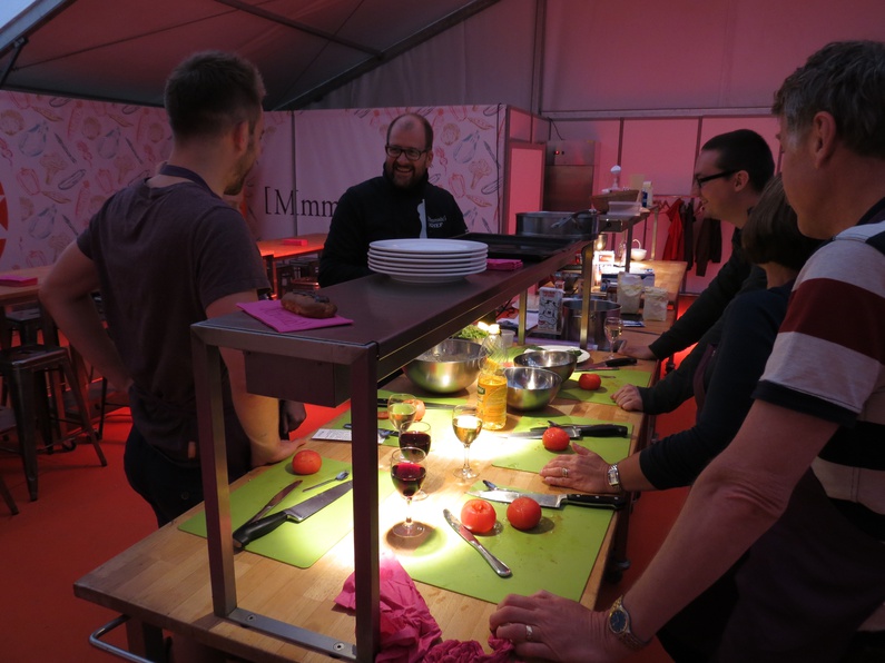 To finish off, a stall offers us cookery lessons for €25 (£18) per person. This is a way for the label to promote itself and for the public to take a course without paying through the roof.