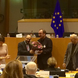 The mayor of Lampedusa, Giusi Nicolini, because of her distinguished commitment to immigrants, was the guest of honor at the ceremony in the European Parliament. Her moving speech narrating the vicissitudes endured by Lampedusa received standing ovations.