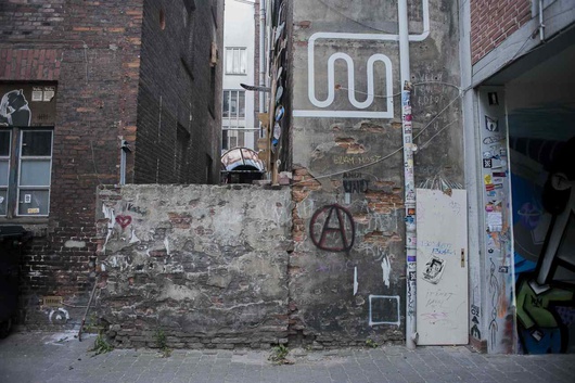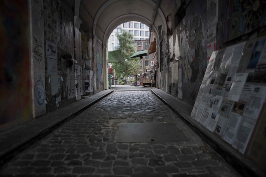 points of entry to the 'Gängeviertel' (which literally means 'neighbourhood of corridors' in English) are made up of little porches that open
