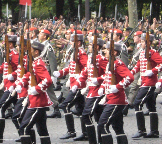 For the first time in history, the President of the French republic has invited all the European countries to march-past on the Champs Elysées to celebrate the French National day. All the 26 accepted. The total participants reached not less than 800 people, all dressed up in different uniforms but still parading under the same flag: the European Union’s. It was hold by Lieutenant Edouardo Gomes from the lancers’ ragiment based in Lisbon. The day preceding D Day, he declared during the training session: “I realize all the faith that my superiors have put in me. It is a great honour for me and I can’t deny that my concentration will be at its utmost on Sunday morning, and during all our marching down the most beautiful avenue of the world.”. Generally, the armies were composed of thirty soldiers. For some countries, the numbers were smaller : eight for Denmark, four for Malta.