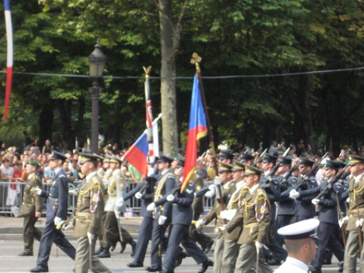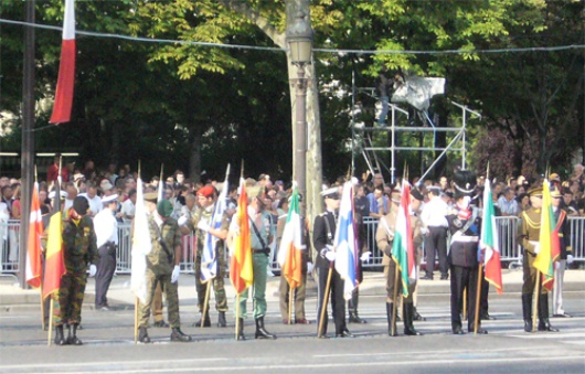 Among the crowd (120.000 people according to the police), some uniforms or flags puzzle many watchers, and some amazing remarks could be heard: “what is it this red and green flag ?” or “oh, really, those are in Europe too now ?” These few geography deficiencies did not prevent Parisian people from applauding with dew consideration their European neighbours, just like they did for the French troops.