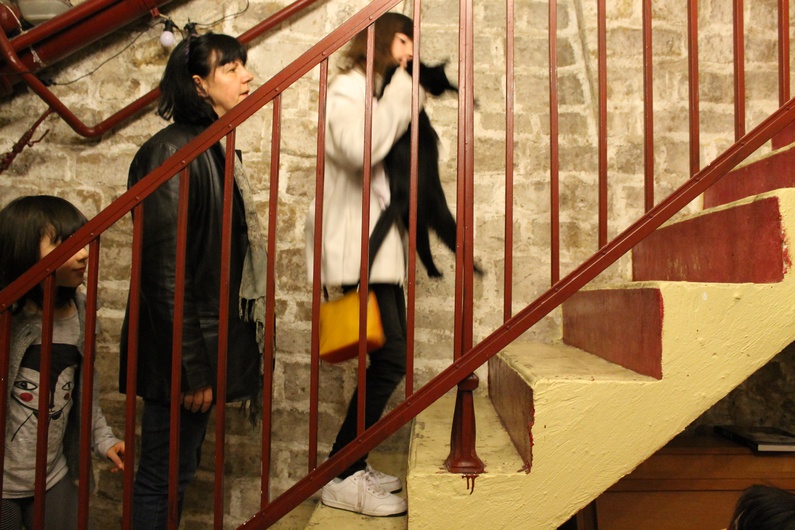 Bajo por una escalera hasta una cueva muy bien iluminada, que parece haber sido tallada directamente del suelo rocoso de París. Es una especie de mazmorra acogedora. Hay varios gatos durmiendo placenteramente en nidos colocados en la pared y otro está encima de la mesa mientras una familia le acaricia. Un gato bebe té de la taza de un hombre barbudo. Me siento como si estuviese en Internet.