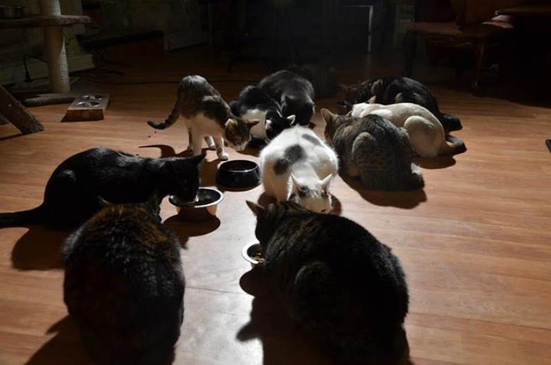Echo un vistazo a los clientes y no puedo evitar pensar que ellos son los verdaderos animales del lugar. Los gatos duermen tranquilamente o caminan con elegancia, mientras que los humanos van dando tumbos, chocándose entre ellos, dando grititos de emoción. Dos jóvenes deciden que, si no pueden tocar los gatos dormidos, los despertarán para poder hacerlo. Uno de los gatos duerme encima del piano, así que los chavales golpean las teclas, que emiten un sonido horrible. El gato se despierta y se lo llevan con aspecto triunfante.
