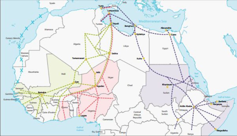 El pasado mes de abril, cerca de 4.000 inmigrantes arribaron a las costas italianas en menos de dos días. La elevada tasa de crecimiento demográfico de África no se traduce en una mejora económica de los jóvenes que, hartos de las injusticias, perciben el Mediterráneo como la única vía de salvación. En el 80% de los casos, la migración es acometida por organizaciones criminales que las escoltan mientras atraviesan el desierto hasta las costas de Libia y Túnez, antes de embarcar hacia Italia. La red de traficantes es más extensa: se habla de trata de humanos cuando la víctima se considera mercancía. El precio de un ser humano depende de la disponibilidad de la mano de obra, basado en la prostitución callejera y en el trabajo en negro del campo.
