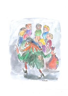 Aunque parece estar ya desfasada, la anterior advertencia solía usarse con el fin de apremiar a los niños neerlandeses y belgas a que se portaran bien. Eso o la fórmula mucho más pomposa “¡Que viene el duque de Alba!”, en clara referencia al antiguo dominio español sobre aquellas tierras.