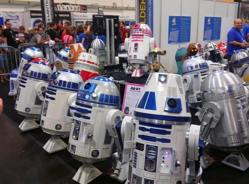 Hay un desfile de disfraces, un Club para construir droides (Droids Builder Club) y todo un recinto reservado exclusivamente para los numerosos club de fans. Muchos seguidores incluso aprovechan la ocasión para tatuarse su pasión. “Tenía lágrimas en los ojos, ¡era tan afortunada!”, me relata una joven que ahora lleva en los pies al droide astromecánico R2-D2. En los stands situados entre las construcciones, se pueden comprar camisetas, figuras, pósters, figuras Lego, libros, juegos y mucho más. En ocasiones son precios elevados e incluso desorbitados, pues Star Wars también es un gran negocio. En el rodaje de la primera película, el creador, Gorge Lucas, se embolsó unos honorarios de 150 000 dólares al asegurarse los derechos sobre el merchandising. Gracias al entusiasmo de los seguidores, desde entonces se han realizado ventas con un valor total de 20 mil millones de dólares, convirtiendo a Star Wars en la series cinematográfica de más éxito de todos los tiempos.