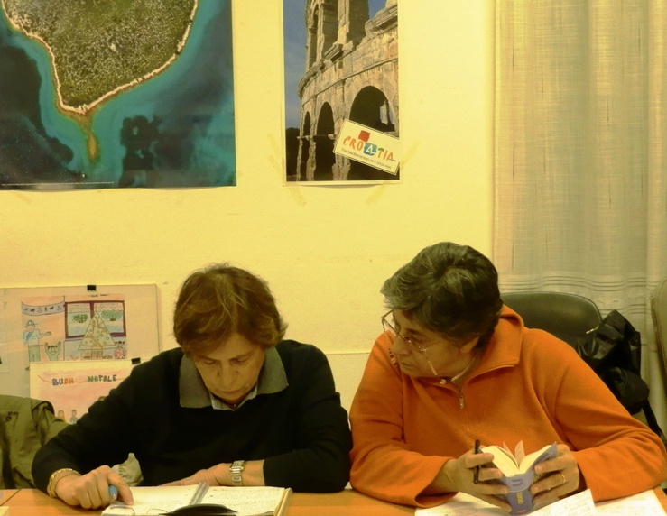 Près de l'église croate de St. Jeronim, où campe l'Institut croate du Pape, la professeure Zorka Verovic Sellan travaille comme enseignante à l'Association italo-croate (Assoziacione Italo – Croato Roma). Elle vit à Rome depuis huit ans et a épousé un Italien. Deux de ses douze élèves sont à la retraite et ont commencé à apprendre le Croate au mois d'octobre. « Ma mère est née en Croatie. Maintenant qu'elle nous a quitté, j'apprends sa langue », explique Sandra Colani. Son amie Alessandra Verresi, également retraitée, lui tient compagnie dans la classe, fait des devoirs et étudie la Croatie. Elles ont toutes deux récemment visité Zadar en Croatie et adorent l'endroit. « Quand je me rends dans la ville de ma mère, je veux être capable de parler la langue. Même si ce n'est pas facile d'apprendre à nos âges, je fais de mon mieux », affirme Colani, faisant écho aux paroles de sa camarade de classe Alessia Mesiano dont la mère était également Croate.