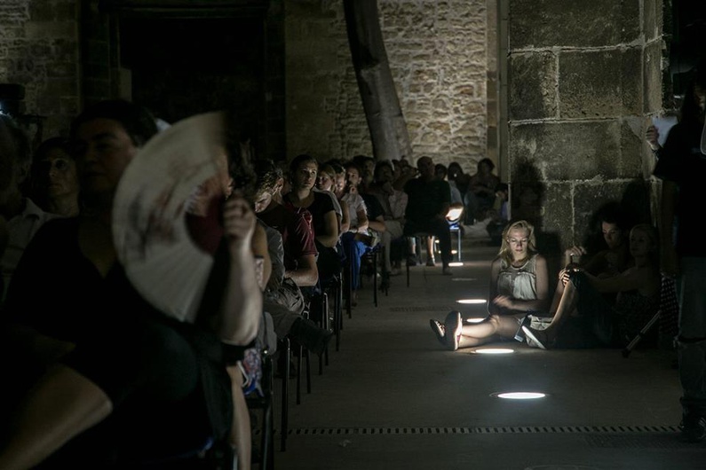 Nous reprenons depuis le début : l'église des Douleurs d'appelle ainsi car en 1520 elle a gardé la peinture de Raffaello Sanzio, le Portement de Croix (ou la montée au Calvaire) qui se trouve aujourd'hui au musée du Prado de Madrid. Par chance, l'édifice est toujours ici avec tout son vécu historique. Il a servi de fort militaire en 1569 pour une action préventive contre l'invasion turque mais il a également servi de scène de théâtre en Italie. Durant la peste des années 1600, il a même servi de lazaret pour contre-attaquer l'épidémie qui a éclaté en ville. Il est possible de le visiter jusqu'au 6 septembre de jour et d'en profiter comme arène la nuit avec l'éclairage tamisé de la voûte étoilée et du grand écran.