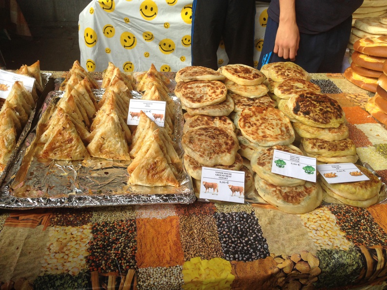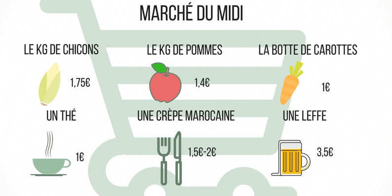 Malgré la foule et la grande diversité des clients du marché, on y déniche des habitués. Yusuf, par exemple, nous raconte qu’il vient tous les dimanches midis au stand de crêpes marocaines pour son repas du midi. Il commande son repas, discute avec les commerçants, et profite de l’ambiance du marché, des gens qui passent, achètent, négocient, et s’arrêtent le temps d’une crêpe ou d’un thé. En face, un boucher nous explique qu’il vient vendre ses produits au marché du Midi depuis vingt ans tous les dimanches. Ainsi, dans un joyeux désordre, habitués et néophytes ne croisent au milieu des étals.