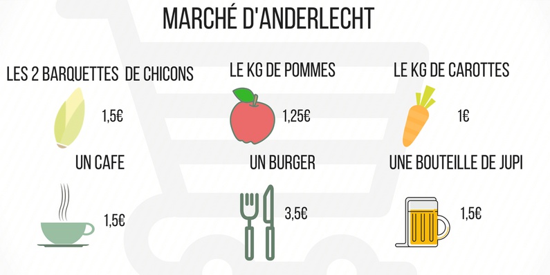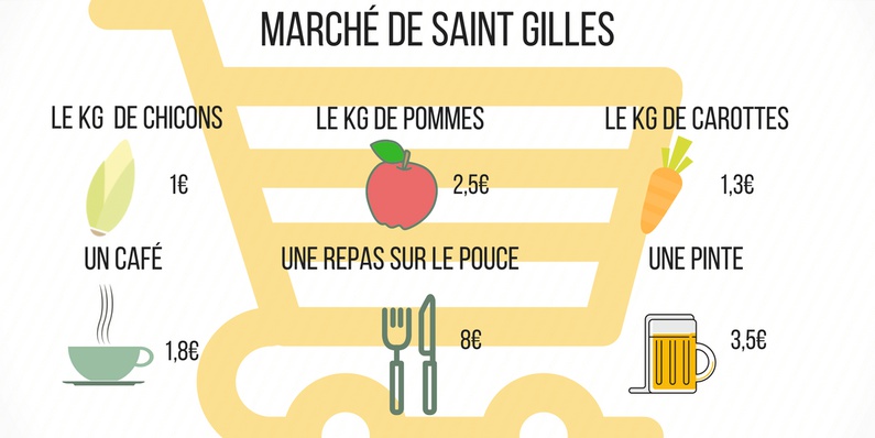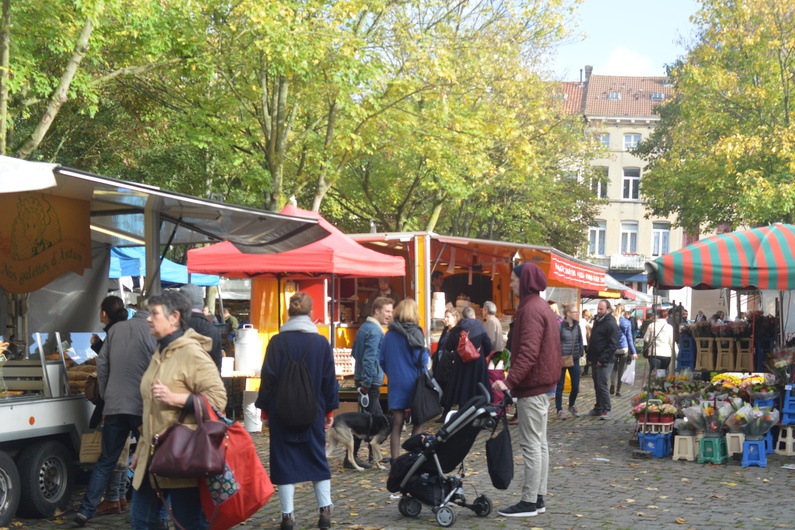 La composition du marché change chaque jour : certains maraîchers viennent tous les jours, d’autres seulement le weekend. Si le mardi vous trouverez principalement des vêtements et autres babioles, le mercredi est réservé aux fruits et légumes. Le jeudi soir, des foodtrucks proposent de nombreuses spécialités et le week end, tout le monde se retrouve : boucher, fromager, boulanger, producteurs locaux belges et bio, traiteurs marocains, français et italiens.
