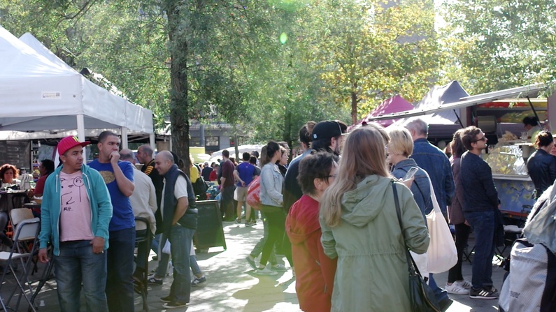 Anna, rencontrée au détour d'un stand, nous alpague : "avez-vous été voir le maraîcher bio, là bas ?". On décide de creuser. L'Italienne de 72 ans est une fidèle du marché. Depuis 10 ans, elle vient tous les dimanche retrouver ses amis autour d'un plateau d'huîtres, qu'elle a appris à apprécier ici-même. Elle regrette les transformations du marché et se donne une joie de soutenir les petits commerçants. S'ils sont bio de surcroît, c'est banco. Céline, la quarantaine, a elle aussi pu voir évoluer le marché. Cela fait 25 ans qu'elle vient, pour vendre les produits frais de sa ferme. Pour elle, la population a changé, gentrifiée. Le marché du samedi reste néanmoins populaire. Les dimanches, surtout lorsqu'ils sont ensoleillés, invitent eux à la flânerie : « Le dimanche les gens ont plus de temps, pas nous ! » .