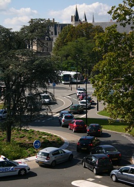 Nantes, la ville de Jules Vernes, est aussi bloquée par les embouteillages. Il est midi et voici ce que l’on peut voir d’un des ronds-points permettant l’accès au centre-ville.