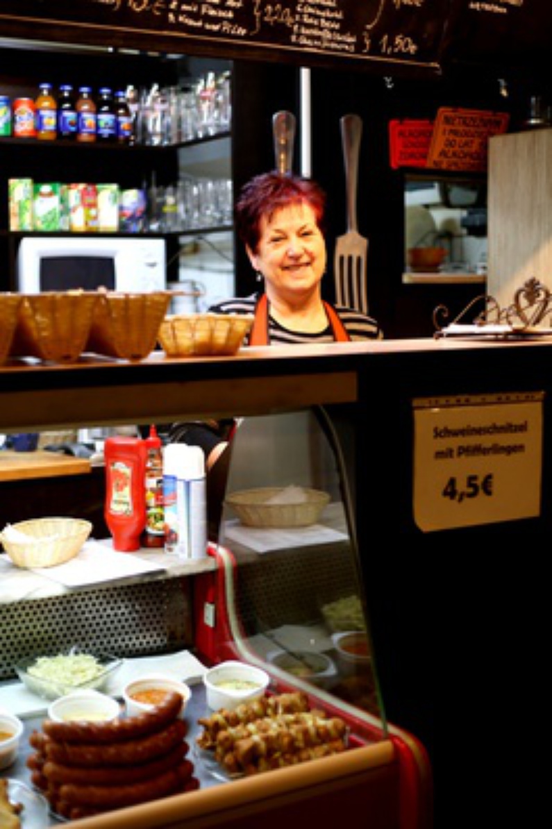L’après-midi, le lieu se remplit de vieux messieurs qui viennent déguster un schnitzel sur les tables nappées de plastique. C’est Marysia qui sert les rafraîchissements – tablier rouge, cheveux auburn, l’air sympathique mais strict. “En Pologne, on déjeune vers 16h en général”, explique-t-elle en allemand avec son accent polonais à couper au couteau. “Mais ici, nous servons le déjeuner entre 11 et 14h, comme en Allemagne !” s’exclame fièrement cette femme de 56 ans. 20 années ont passé depuis l’inauguration de son snack. Aujourd’hui, elle opère toujours aux cuisines et assure le service de temps en temps, mais c’est sa plus jeune fille qui est désormais aux commandes. Marysia était couturière dans une usine de la région avant que celle-ci ne ferme ses portes peu après 1989, suivant le destin de nombreuses usines polonaises. Après l’effondrement du bloc soviétique, à l’exemple de la restauratrice, de nombreux Polonais ont profité de la libéralisation de l’économie pour lancer leur propre commerce ou leur petite entreprise.