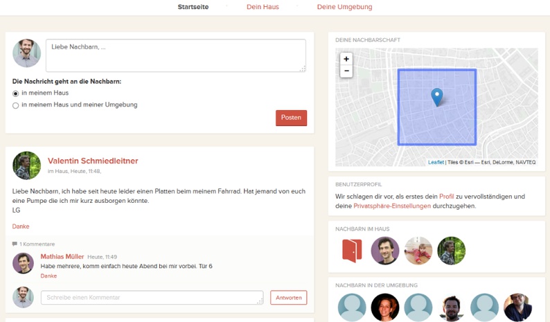 Nous sommes extrêmement satisfaits de ce lancement. Nous avons cherché six personnes de notre cercle de connaissances qui habitent dans le 7ème arrondissement et nous avons lancé FragNebenan dans leurs immeubles. Sans marketing actif, notre plateforme est déjà utilisée dans maintenant plus de trente immeubles après pile quatre semaines.
