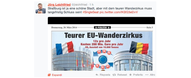 D'après Jorg Leichtfried et beaucoup d'autres députés, siéger à Strasbourg quatre jours par mois et faire le reste des séances à Bruxelles n'a pas de sens. Son tweet dénonce le « cirque » des aller-retours entre les deux villes qui coûte 200 millions d'euros par an.
