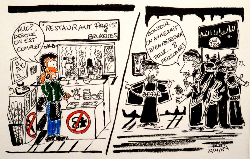 Samedi matin, Bruxelles s'est réveillée en « état d'urgence". Métros bloqués, transports limités, cinémas et lieux culturels fermés, tout comme certains bars et restaurants : la ville donnait une impression de « ville morte » ce week-end. Une dessinatrice de Cafébabel Bruxelles a voulu s'exprimer sur cette fin de semaine très particulière dans la capitale de l'Europe.