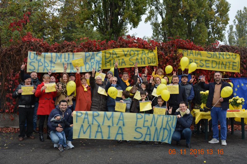 Candidata dell'opposizione di centro destra, lei ha creato il proprio partito « Acțiune și Solidaritate » (Azione e Solidarieta') nel mese di maggio 2016. Lei crede in una « Moldavia Europea», al contrario del suo avversario Igor Dodon che vuole ristabilire un partenariato con la Russia e fermare i progetti economici dell"Unione Europea in Moldavia. Ex ministro dell'economia nel governo comunista dal 1997, Dodon rappresenta il PSRM : Partidul Socialiştilor din Republica Moldova (Partito Socialista). Maia Sandu anche lei ex ministro dell'istruzione dal 2012 al 2015, dopo aver lavorato per la Banca Mondiale. I 38,71% dei voti a suo favore nel primo turno non sono stati sufficienti a far tremare Igor Dodon, il quale ha sfiorato la vittoria domenica 30 ottobre 2016 con 47,98% dei voti. Ogni voto conta per i sostenitori di Maia Sandu, a volte pronti a percorrere migliaia di chilometri e superare i confini per andare a votare per lei. Piu' che dei chilometri, loro vogliono fare un "PAS verso un futuro migliore" ("un PAS spre un viitor mai bun", Radu - Canada), un gioco di parole che si riferisce alle iniziali del partito politico che loro sostengono.