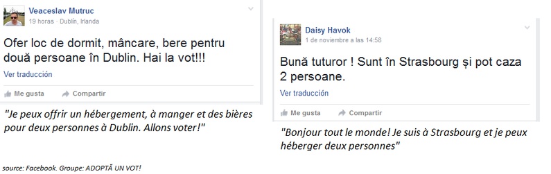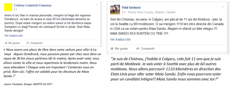 « Io posso ospitare due persone a New York», « Noi abbiamo tre' posti liberi in macchina per andare a Francoforte da Kempten », « Siamo un gruppo, andiamo a Seattle da Calgary, 2400 km per dare il voto giusto », « Noi abbiamo prenotatato un autobus per 70 persone da Northampton, venite insieme a noi ! »… Questi sono i messaggi che puoi trovare insieme a tanti altri nel gruppo su Facebook "Adoptă un vot!" : « adotta un voto » (in rumeno, la lingua ufficiale della Moldavia).