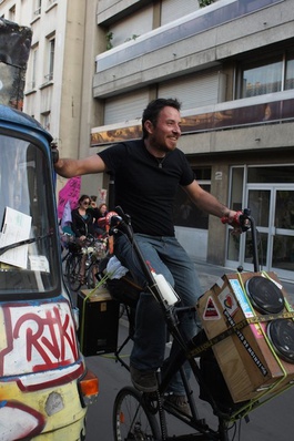 Romano doc, Giuseppe Caprarelli è stato attivo dal 2003 al 2008 nella Ciclofficina Don Chisciotte di Roma, la ex Snia. È arrivato a Parigi nel novembre 2008 impegnandosi nella Vélorution, poi in un progetto nato nel luglio 2010 e concretizzatosi nella Cyclofficine del XX arrondissement, al civico 15 di rue Pierre-Bonnard, a cinque minuti dalla Metro Gambetta. L’associazione, che a maggio ha festeggiato un anno dall’apertura dei suoi locali, è nata per promuovere l'apprendimento al riuso e l'arte della meccanica a tutti i ciclisti urbani che vogliono diventare autonomi nella manutenzione. Fanno parte dell’associazione anche altre due Cyclofficine, a Ivry-sur-Seine e Pantin. “Quest’ultima attende ancora un locale ma le sue attività di strada sono un esempio di riappropriazione di spazio pubblico e di atelier fuori le mura che coinvolge grandi e piccoli, in un legame sociale a tutto tondo, o per meglio dire, a tutto ciclo”, spiega Giuso.