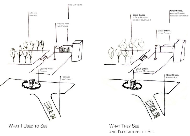 Così, sin dal momento dell’annuncio del progetto, il collettivo Taksim Plateformu si è impegnato nella denuncia del piano urbanistico e ha proposto delle alternative. Per i suoi membri, il progetto Taksim è solo l'ennesima incarnazione delle carenze di una politica di rinnovamento urbano che, in maniera quasi sistematica, se ne infischia delle esigenze democratiche (assenza di consultazioni preliminari degli abitanti e dei professionisti che si occupano di urbanistica, mancanza di trasparenza). Nella fattispecie, si fa riferimento anche all’insolita rapidità con la quale le autorità municipali e le altre agenzie regolamentari hanno approvato il piano di ristrutturazione, segno rivelatore dell’incuria dei poteri pubblici. Così si comprende meglio perché nel momento in cui sono iniziati i lavori, nel novembre del 2012, i commercianti e coloro che abitano nelle vicinanze della piazza si sono sentiti messi davanti al fatto compiuto e hanno incubato un forte sentimento di rivalsa scoppiato nelle proteste che hanno fatto il giro del mondo. Come ci confida un istanbuliota disincantato: “Qui, non ha importanza chi può costruire, cosa può costruire e dove!”. In un tale contesto, è difficile credere che il progetto Taksim sia stato concepito nell’interesse dei cittadini, visto che l’economia nazionale fa affidamento, in gran parte, sul settore delle infrastrutture e dei lavori pubblici. Nella sfera politica nazionale, si mormora inoltre che i grandi progetti riguardanti le infrastrutture siano divenuti argomenti a carattere elettorale. Niente di sorprendente quindi che ci sia qualche sospetto sulle reali intenzioni dei disegnatori del piano di progettazione, nei riguardi di un luogo, peraltro, altamente simbolico.