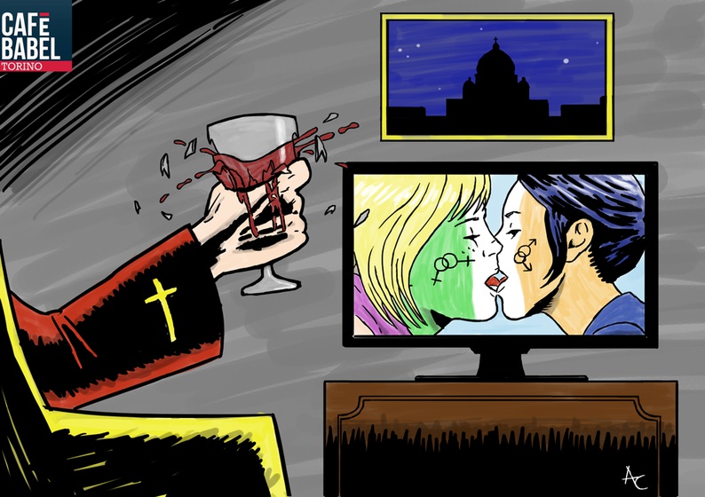 Il 22 maggio 2015 la cattolica Irlanda è il primo paese al mondo a ricorrere al referendum per modificare la propria Costituzione in favore delle unioni tra persone dello stesso sesso. Si tratta di un traguardo che ha incontrato molti elogi sparsi per il mondo, ma non sono mancate aspre critiche in ambito ecclesiastico. Con questa illustrazione, noi di Cafèbabel Torino vogliamo celebrare il voto irlandese come evento del mese di maggio.
