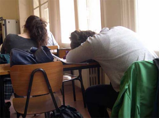 La qualità delle presentazioni è stata variabile. La maggior parte delle volte gli exposés sono molto noiosi perchè gli studenti si limitano a leggere i propri appunti. Qualche volta, però, l’oratore fa credere che si preannunci un argomento interessante, introduce il tema procedendo a una velocità ragionevole. Poi, proprio quando inizi a cullarti nell’illusione che stai per assistere a una presentazione accettabile, ecco che il tuo compagno allunga le mani, afferra la sua pila di appunti e attacca a leggere alla velocità della luce. E’ quella che si chiama un’esperienza di pre-morte: nomi, immagini, date ti scorrono davanti trasformandosi in lettere e numeri senza alcuna logica. Ma, se dopo mezz’ora sei ancora abbastanza cosciente da riuscire ad uscire dall’aula, allora puoi star certo che saprai sopravvivere a qualunque cosa.