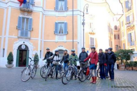 Esiste (o meglio esisteva ?) un inaugurato nel 2008, che avrebbe dovuto abituare i cittadini alla presenza delle due ruote. Ma curiosamente le biciclette sono generalmente assenti dalle stazioni apposite. Il proprietario di un negozio pensa che le biciclette siano state addirittura rimosse. A causa – dice - degli interminabili scandali che hanno colpito il processo di assegnazione del contratto di gestione di questo servizio. Ma allora, perché rimane ancora qualche bicicletta abbandonata nelle postazioni? Una cosa è certa: per chi si sposta in motorino questi ciclo-posteggi vuoti sono una manna venuta dal cielo! sistema di bike-sharingSul punto di perdere la pazienza, mi ritrovo faccia a faccia con un . La loro guida è olandese, come olandesi sono anche i suoi clienti. Sono i soli ad optare per questo tipo di visita guidata “ecologica” e sportiva. bicicletta Vista la loro familiarità con le due ruote, non si lasciano intimidire dalla disastrosa reputazione del traffico locale. Ma nessuno di loro ne sa più di me sulle norme di circolazione stradale, che sembrano inesistenti. Ognuno a Roma ha la sua propria interpretazione personale: all’affermazione «Sì, certamente potete circolare nelle corsie preferenziali riservate ad autobus e taxi», si ne oppone un’altra: «certo che no, rischierete la pelle, autobus e taxi non sono certo disposti a condividere il loro spazio con voi, li fate rallentare».gruppo di turisti in bicicletta