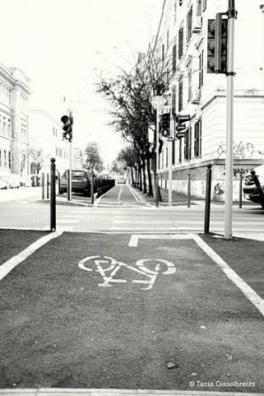 Dapprima ciclista per circostanza, l’abitudine ha fatto di me una ciclista convinta. Venendo da Strasburgo, città dove le due ruote la fanno da padrone, ho fatto di tutto per poter disporre di una bicicletta a Roma, malgrado gli ansiosi commenti di familiari e amici: “È un suicidio!”. Avevano ragione: dopo quattro giorni di solitudine in una città dominata dalle automobili, ho scoperto che andare in giro in bicicletta può essere equiparato a fare il kamikaze…