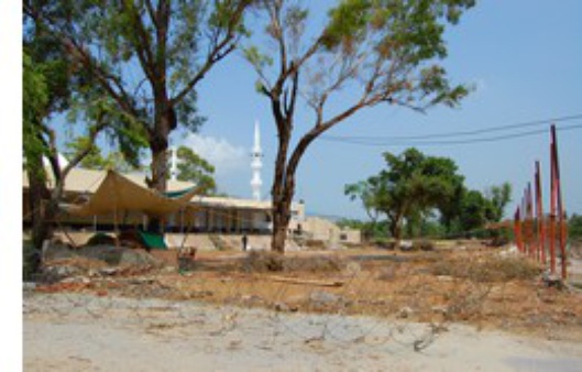 La moschea, inaugurata dal dittatore Zia-Ul-Haq, sembra intatta ma in realtà non è così. Adesso è alta la metà e non è più rossa. Il bazar di Aabpara, accanto alla moschea è pieno di pietre e mattoni. Un enorme spazio vuoto con check-point dell’esercito completa la vista sulla sinistra della moschea nel punto in cui hanno distrutto il seminario. Gli ufficiali stanno dietro sacchi di sabbia e filo spinato nella veranda del centro di sicurezza. Usciamo dalla visuale dei militari quando incontriamo una famiglia che si incammina per la moschea. «Qui sono morte le figlie di quelle signore», ci dice una donna incurante del soldato che le indica di andarsene.