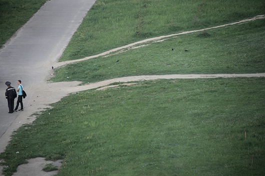 Passeggiando per le vie di Minsk, Klinau mi fa notare come la monumentale e solenne capitale costruita sull’utopia comunista della città del sole, oggi si rivela lo scenario piatto di un dramma pastorale in stile teatro dell’assurdo; non un dramma per bielorussi, russi, polacchi o tedeschi, ma un’opera teatrale universale sui sogni degli uomini e sulla non possibilità di realizzarli.