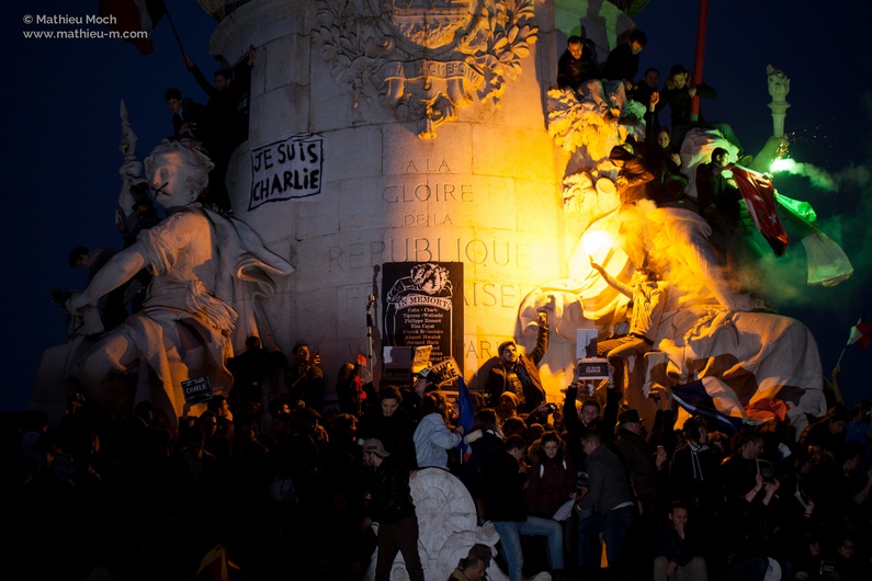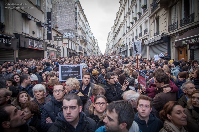 Marsz zorganizowany w Paryżu 15 stycznia tak naprawdę nie był marszem. Już o 15:00 Plac Republiki i pobliskie ulice, aż do stacji metra Strasbourg Saint-Denis, zalane były ludźmi. Uczestników było tak wielu, że marsz zamienił się raczej w postój dla wolności. Tylko ci najbardziej zdeterminowani, po pięciogodzinnym wysiłku, zdołali dotrzeć do Placu Nation, końcowego punktu marszu.