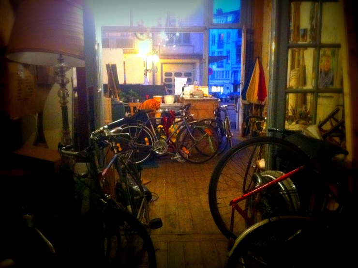 Naprawa lub skonstruowanie własnego roweru w Brukseli jest paradoksalnie łatwiejsze niż pedałowanie po niekończących się ulicach miasta, które, nie wiadomo za jakie grzechy w przeszłości popełnione, biegną zawsze pod górę! Pod numerem 12 ulicy Avenue Demeur w sercu dzielnicy St Gilles mieści się warsztat rowerowy Papa DouaLa. Sam pochodzi z Pavii, ale studiuje politologię w Brukseli. W wolnym czasie przychodzi do warsztatu. Kiedy go spotykam, krząta się zapracowany po tej wyjątkowej przestrzeni – oprócz rowerów znajdziemy tam obrazy i rośliny. W tym samym miejscu malarz tworzy swój obraz, sprzedawane są towary ”zero kilometrów” (pochodzące z własnej uprawy bądź od okolicznych rolników) i hodowane produkty bio. Bywalcy PapaDouaLa wspólnie opłacają czynsz. Rowerowa oficyna powstała dwa lata temu. Początkowo Eric naprawiał rowery na chodniku przed budynkiem, z czasem warsztat zaczął się rozwijać, zakupiono nowe narzędzia i akcesoria dla rowerów. Obecnie to fascynujące miejsce jest otwarte w każde środowe popołudnie i utrzymuje się dzięki dobrowolnym datkom stałych bywalców.