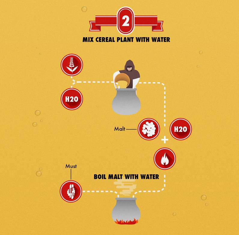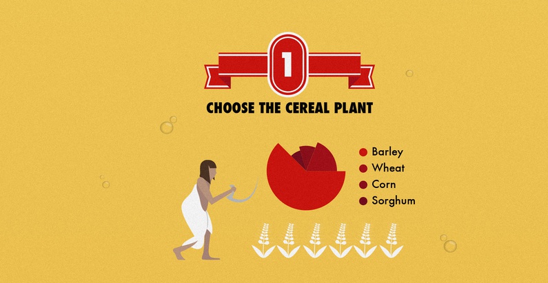 Egipskie manuskrypty pochodzące sprzed 8 000 lat dowodzą, że już wówczas wytwarzano wino z jęczmienia, na zakwasie pochodzącego z fermentacji niedopieczonego chleba, a budowniczowie piramid raczyli się prymitywnym piwem. Było ono dużo słodsze niż to, które pijemy dzisiaj, ale sam przepis wywodzi się właśnie znad Nilu. Faktem jest również to, że kilka współistniejących obok siebie cywilizacji wytworzyło podobny napój niezależnie od siebie (coś, co trudno sobie wyobrazić w dzisiejszej globalnej wiosce). Historia, inspiracja i sprzyjające warunki rolnicze sprawiły, że ludzie z kilku miejsc na świecie jednocześnie wpadli na pomysł wytwarzania soku z różnych rodzajów zbóż, takich jak jęczmień, kukurydza, pszenica, czy sorgo. To bogactwo zaowocowało niezliczoną ilością odmian i wariantów smakowych piwa, wytwarzanych po dziś dzień. Obecnie niewątpliwie najczęściej używanym zbożem jest jęczmień, użyjemy go zatem jako przykładu, opisując proces produkcji. Zboże zaraz po zebraniu łączy się z wodą, żeby rozpocząć kiełkowanie. W rezultacie moczenia ziaren otrzymujemy tak zwany słód. Słód ten jest następnie śrutowany w młynie i zalewany gorąca wodą. Po przefiltrowaniu powstałego zacieru otrzymujemy tak zwaną brzeczkę – słodki napój, który wkrótce grzyby z rodziny Saccharomyces cerevisiae przekształcą, właśnie w wyniku fermentacji, w napój alkoholowy.