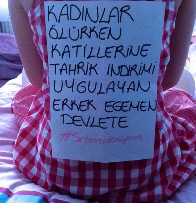 Tysiące kobiet, a nawet mężczyzn, zamanifestowało swój sprzeciw wobec ostrych słów Erdogana wygłoszonych podczas zgromadzenia kobiet, które domagały się ustanowienia parytetów. Sieć zalały zdjęcia pleców opatrzone hashtagiem #WeAreTurningOurBacks (odwracamy się plecami) i licznymi komentarzami wzburzonych użytkowników. Prezydent określił akcję na Twitterze jako „moralną obrazę i zniewagę”.